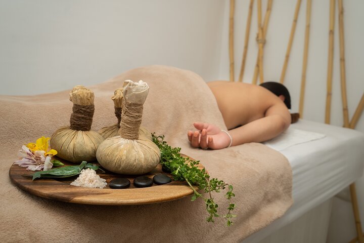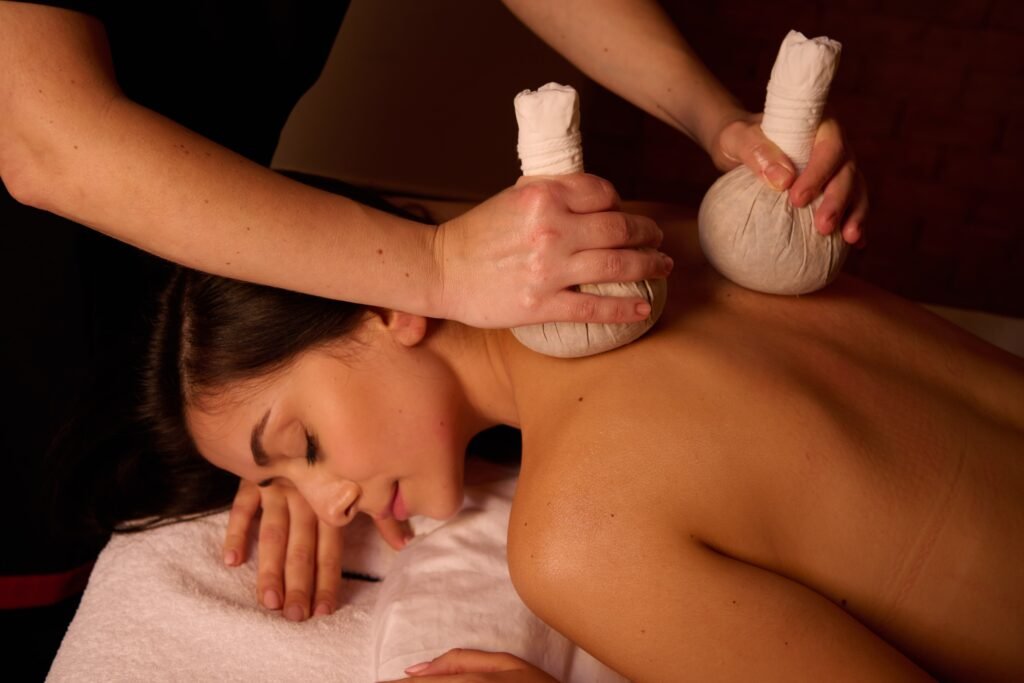 El masaje con pindas terapéutico muscular medicinal de calor profundo es una rica mezcla de hierbas perfumadas con aceites orientales que tiene efectos antiinflamatorios, antisépticos, astringentes y antioxidantes.