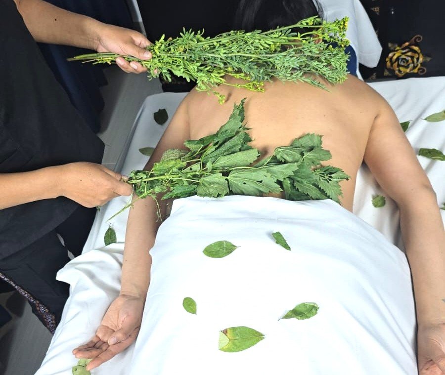 Terapia combina el masaje manual con el poder curativo de las hierbas medicinales andinas. Se aplican compresas calientes o aceites infusionados con plantas como romero, muña, eucalipto, coca, ruda, canabis, entre otras, que penetran la piel y actúan sobre los músculos tensos y las zonas doloridas. Ideal para desintoxicar, reducir la inflamación, recuperarse y como complemento terapeutrico combatir el mal de altura.